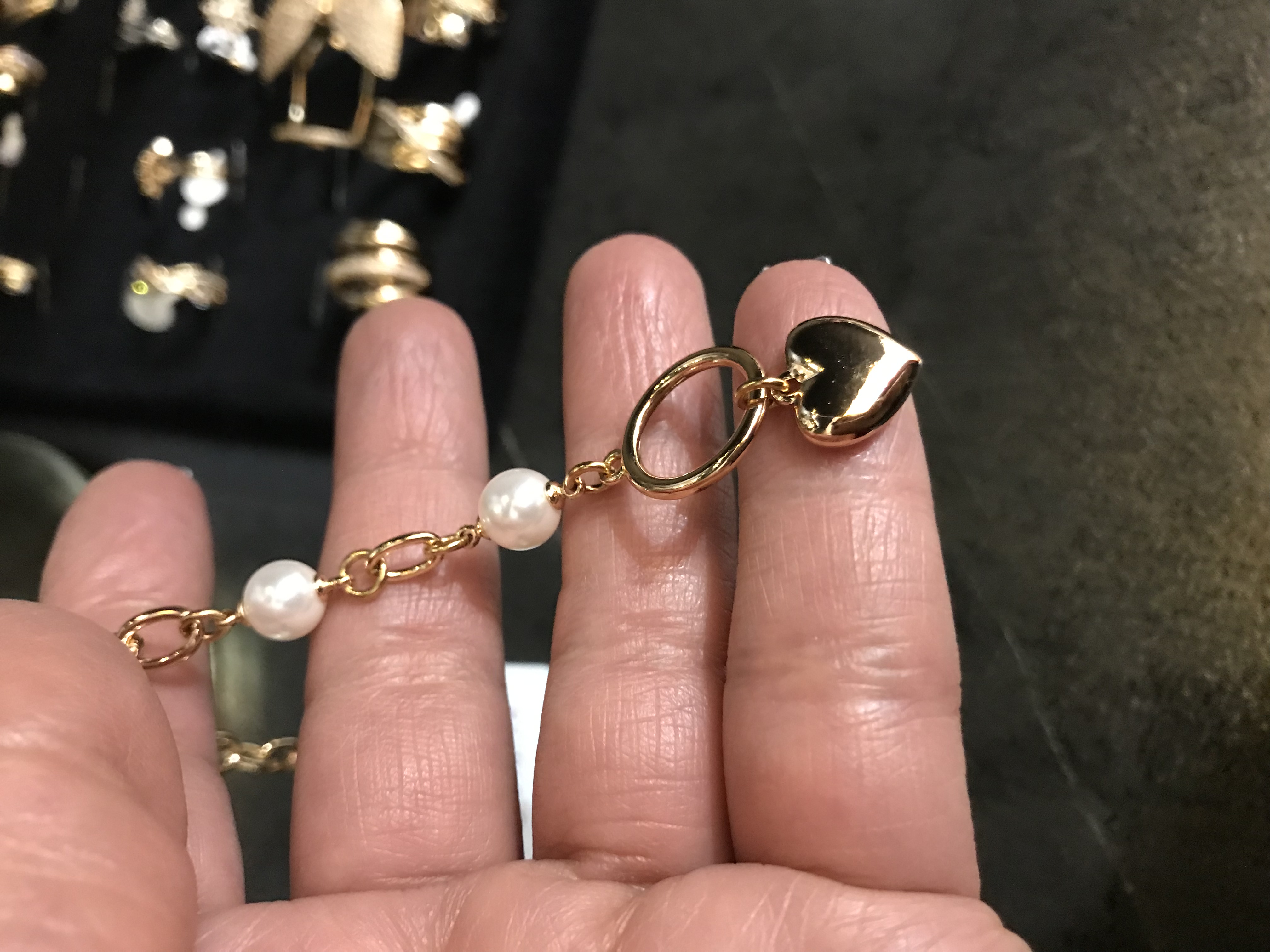 دستبند ژوپینک اصل مروارید و قلب آویز