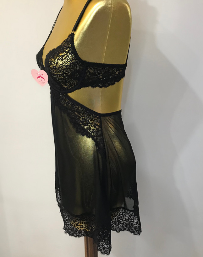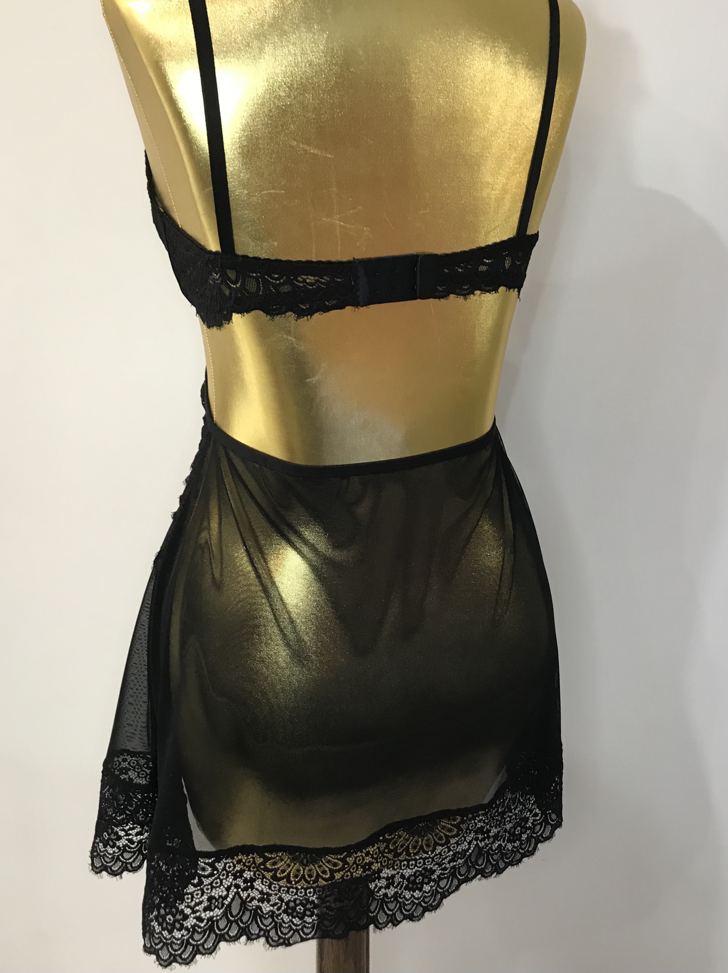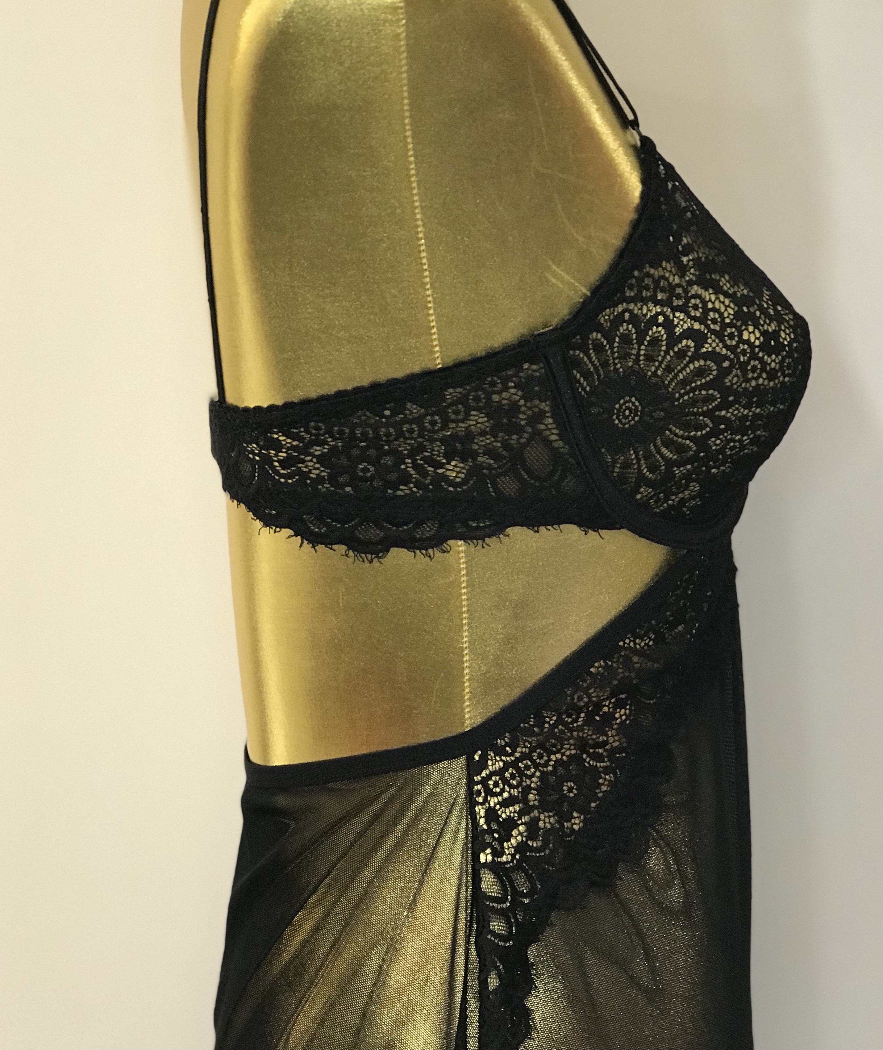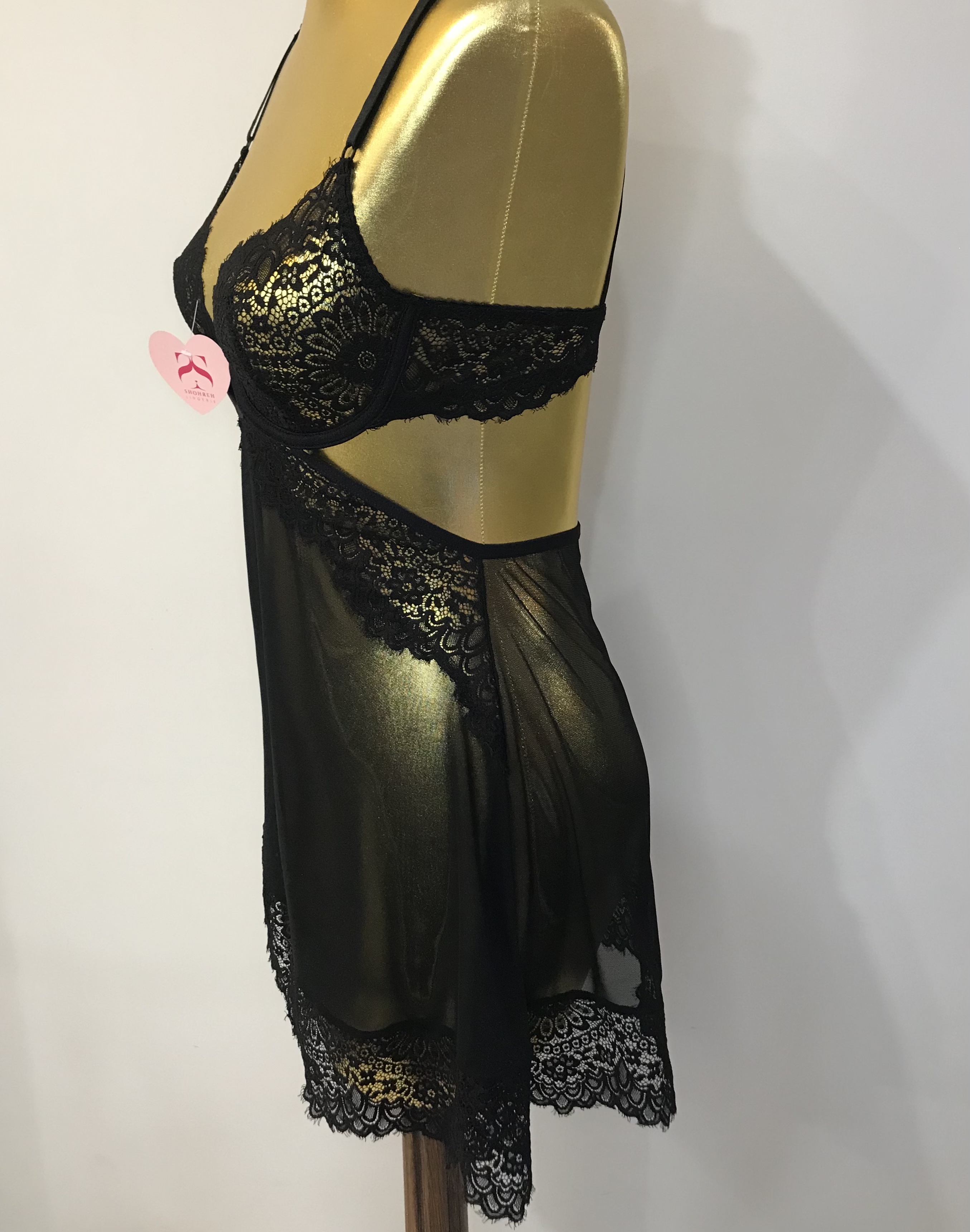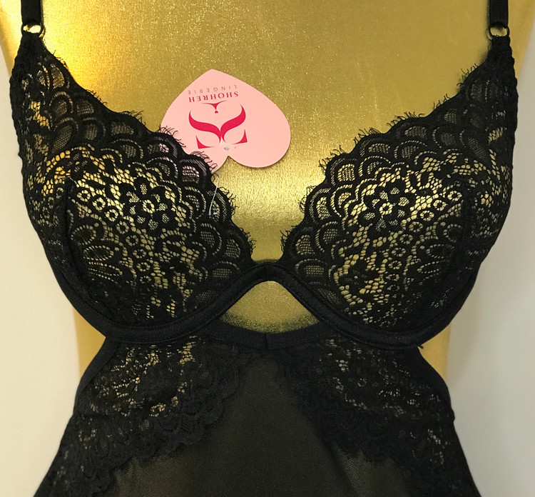 لباس خواب گیپور مشکی فنردار از برند شهره فوقالعاده لطیف وسبک دوخت بسیار ظریف با تنخور فوقالعاده شیک و اغواگر داری سه سایز همراه با شورت فانتزی